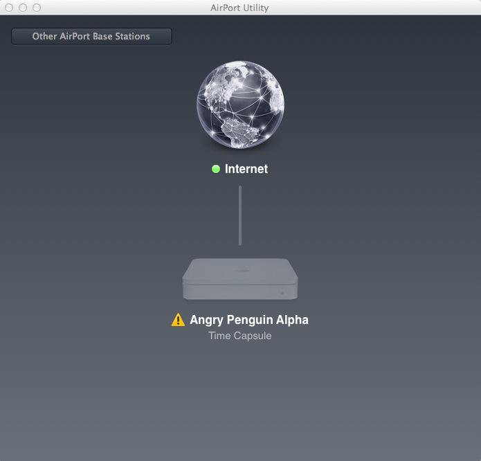 I’m typing this post while connected to my Time Capsule router. You’d never know that from looking at the Airport Utility, which can’t identify the router on the network. Never run into this problem before updating to Snow Lion.
