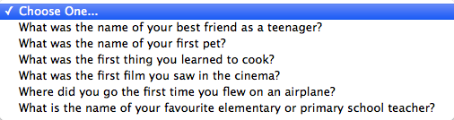 You might wonder why these questions are being asked. I suspect they’re largely in response to the Mat Honan hack. In short, a Wired reporter’s Apple, Amazon, Twitter, and Google accounts were hacked so a third-party could masquerade as Mat on Twitter. This led to a ridiculous level of criticism in the press concerning how Apple authenticated users’ identities. I have no doubt that these questions – again, pictured above – are largely meant to better authenticate users and thus avoid identity fraud.